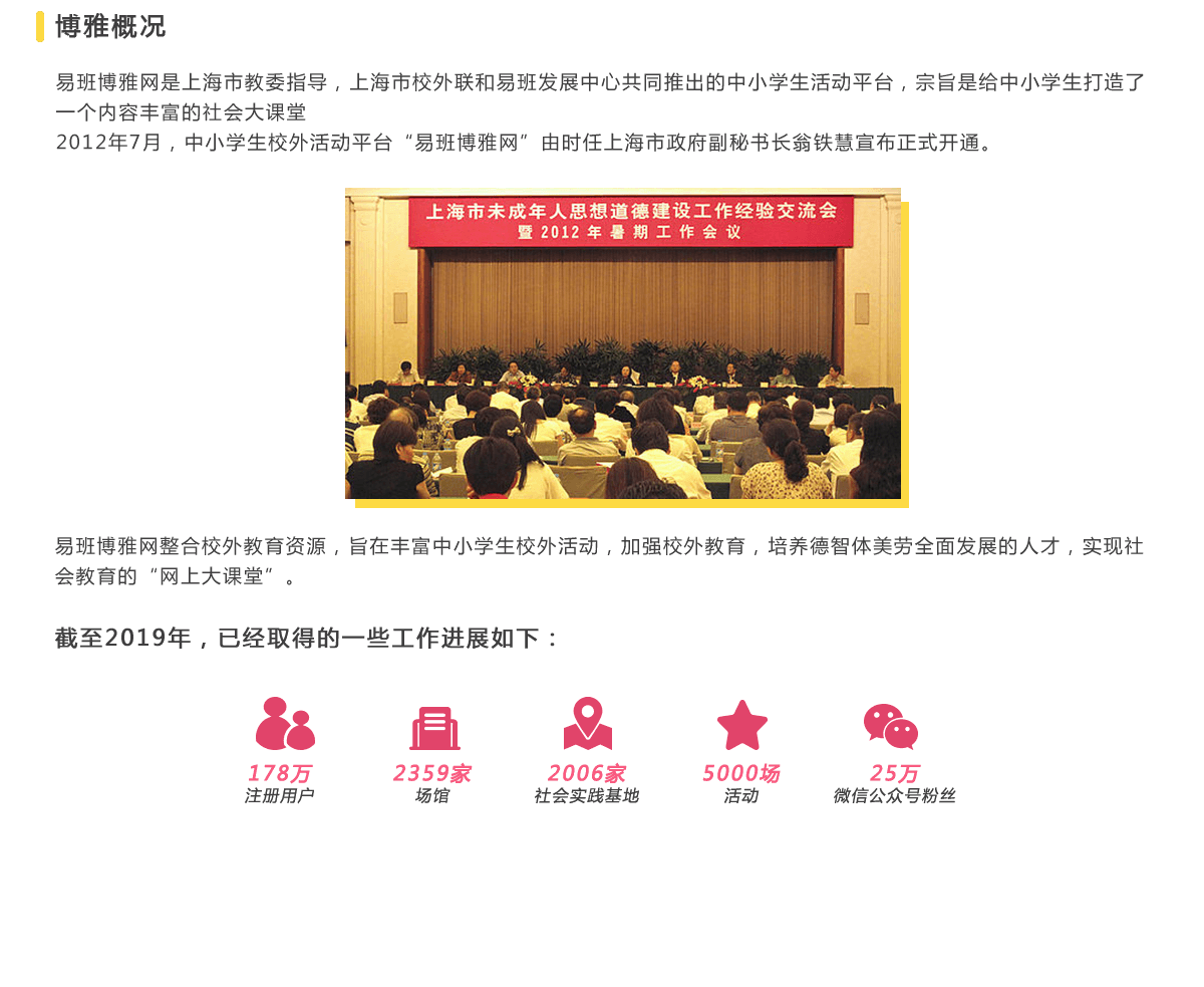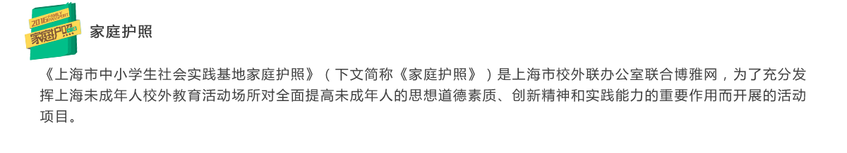 易班博雅网连续5年作为《家庭护照》官方指定发放平台,每年全市共计发放30万册,优惠体验场馆达到84家。