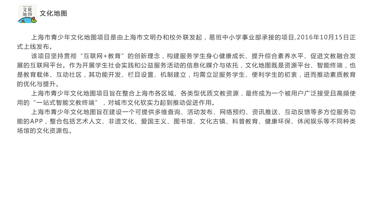易班博雅网参与上海市教委“青少年文化地图APP”招标项目,最终成功竞得此次项目。