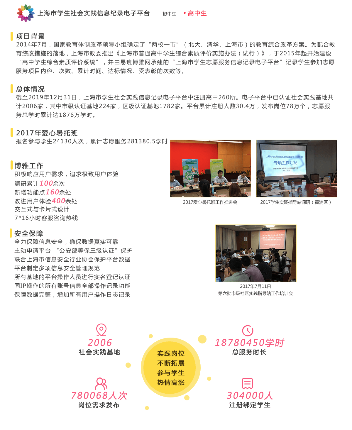 承担上海市普通高中学生综合素质评价的校外实践部分工作,成为上海市学生社会实践信息记录电子平台。